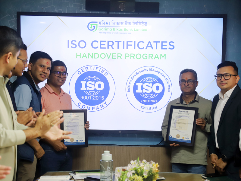 Garima Bikas Bank Limited invites sealed bid from eligible interested suppliers/manufacturers for Supply and Delivery of Dual Interface Contactless Cards of VISA Debit Card, Nepalpay Debit Card & Mastercard. The same notice has been published on Rajdhani Daily dated 2083/01/11
